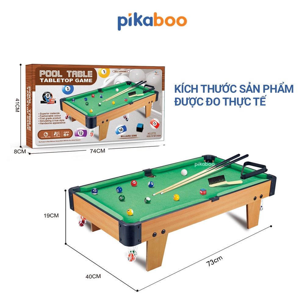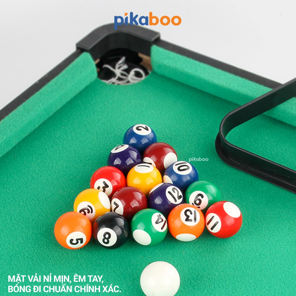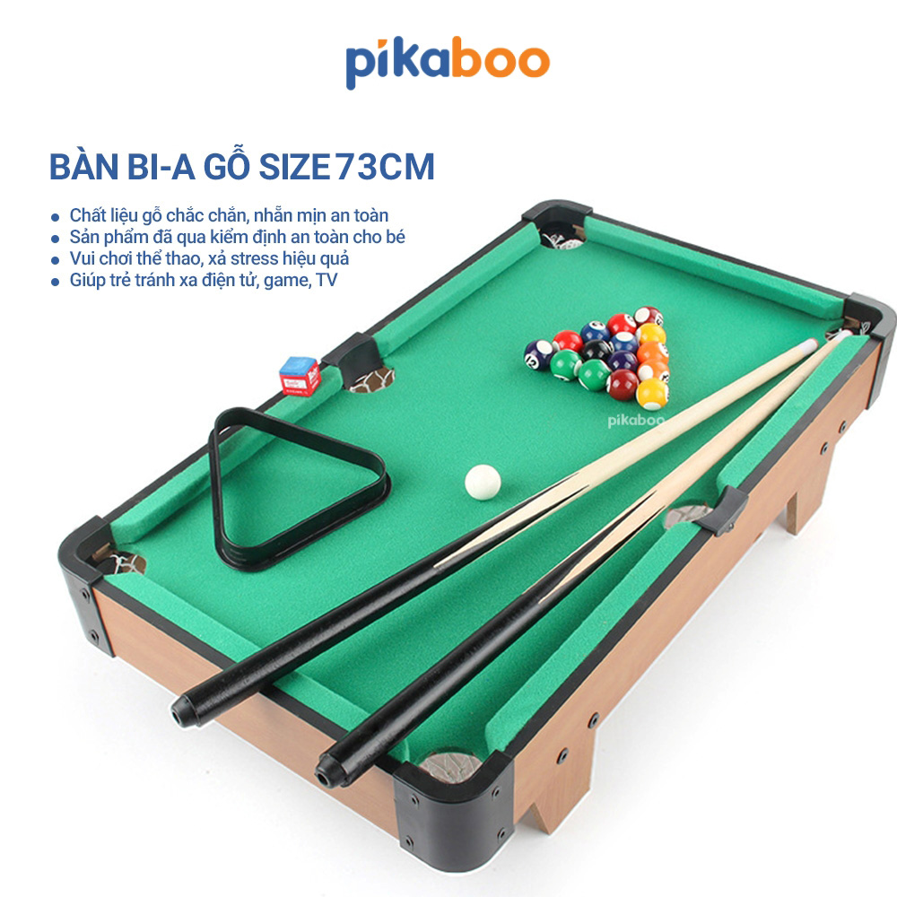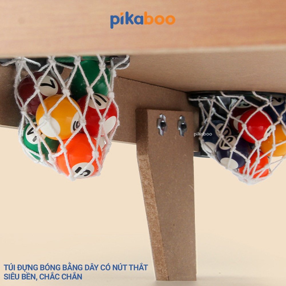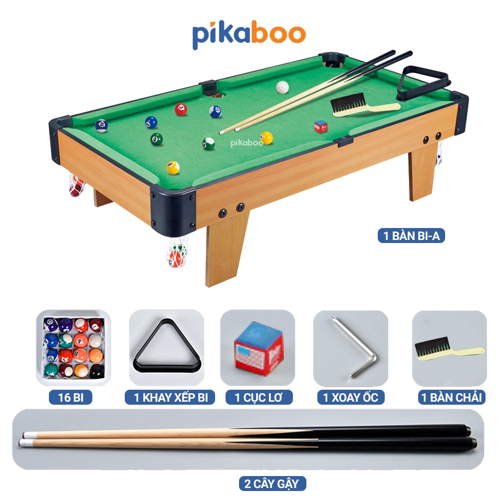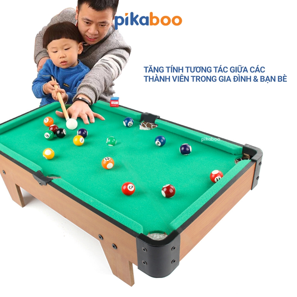 Bàn bi-a cao cấp Pikaboo là món đồ chơi yêu thích không chỉ cho trẻ nhỏ mà người lớn, thanh thiếu niên chơi đều say mê. Chân và khung bàn bằng gỗ, mặt vải nỉ mịn, êm tay, bóng đi chuẩn chính xác. Chơi game này còn giúp xả stress vô cùng hiệu quả luôn nhé.