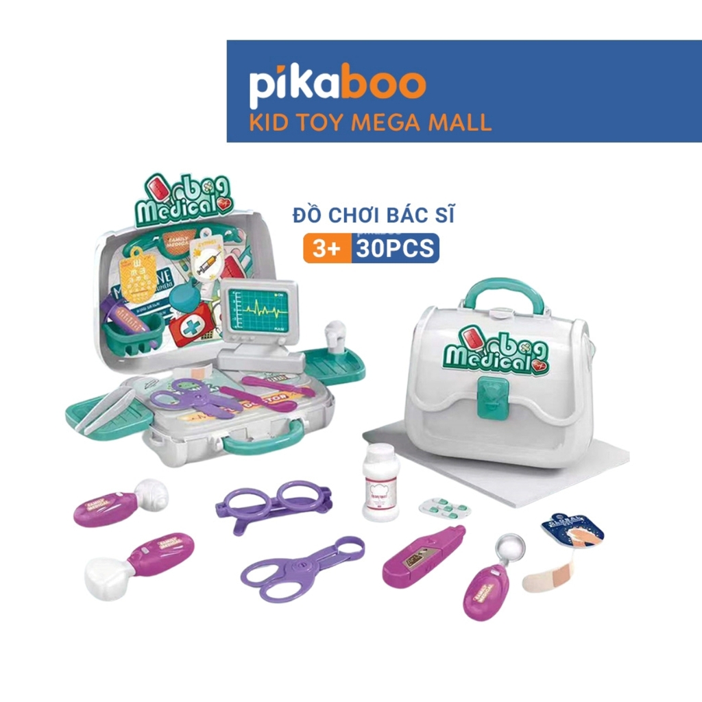 - Có 3 chủ đề cho bé lựa chọn: Đồ chơi siêu thị, đồ chơi trang điểm và bác sĩ