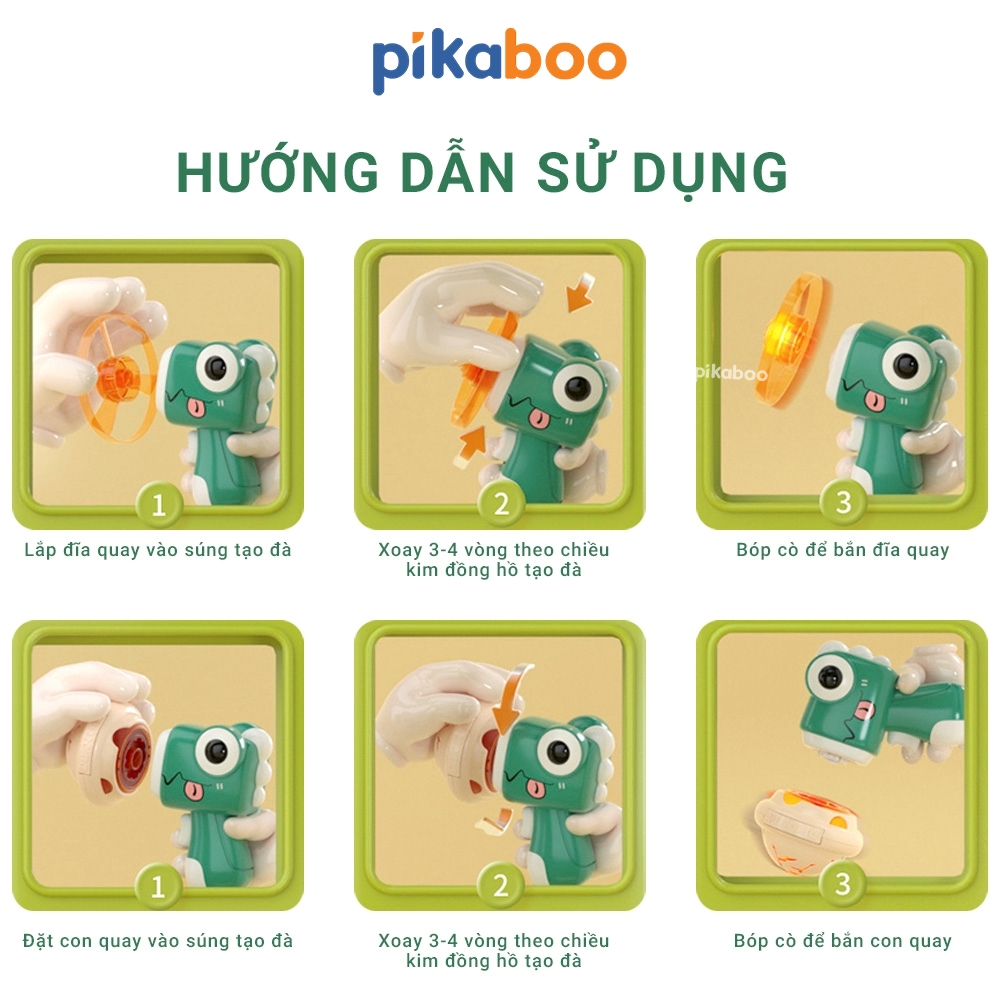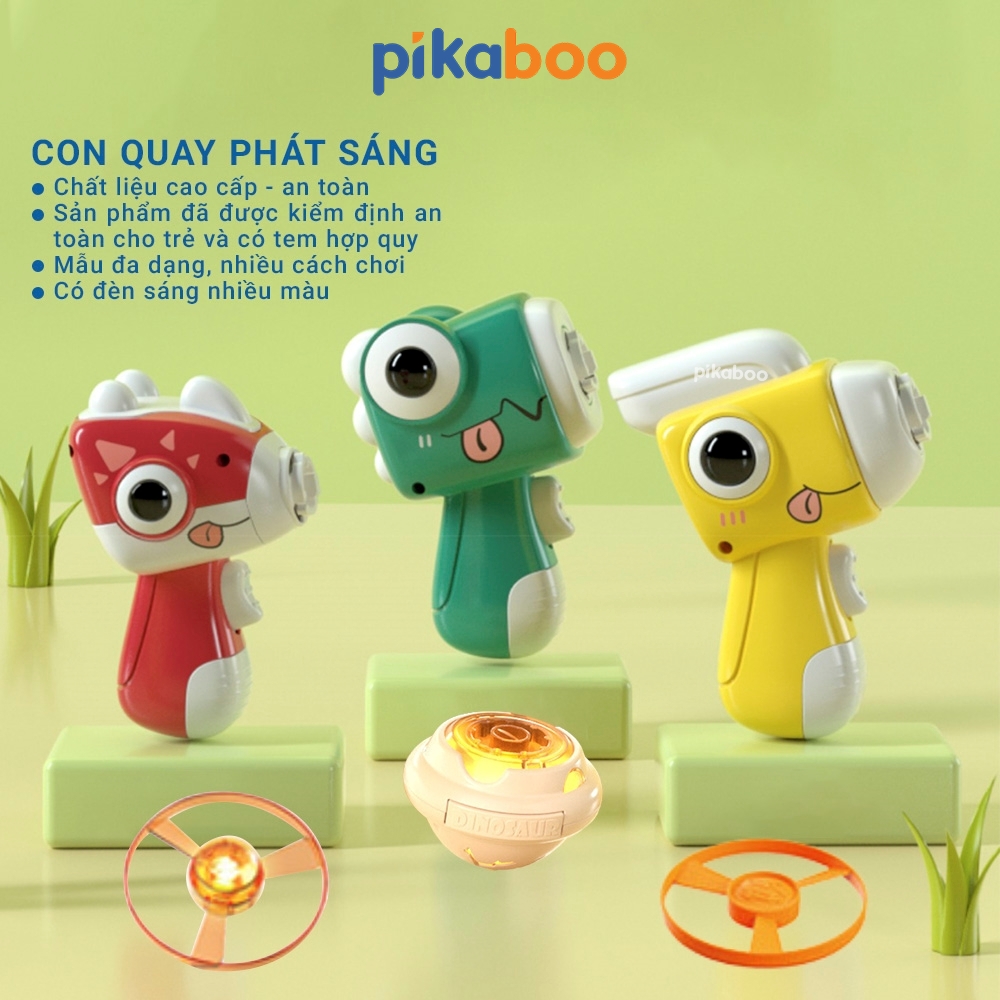 Đồ chơi con quay vô cực khủng long đĩa bay phát sáng cao cấp Pikaboo đơn giản thú vị không dùng pin chất liệu an toàn