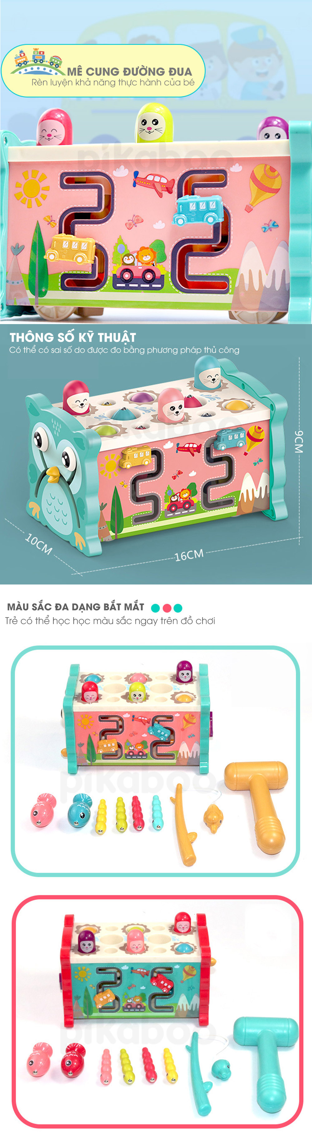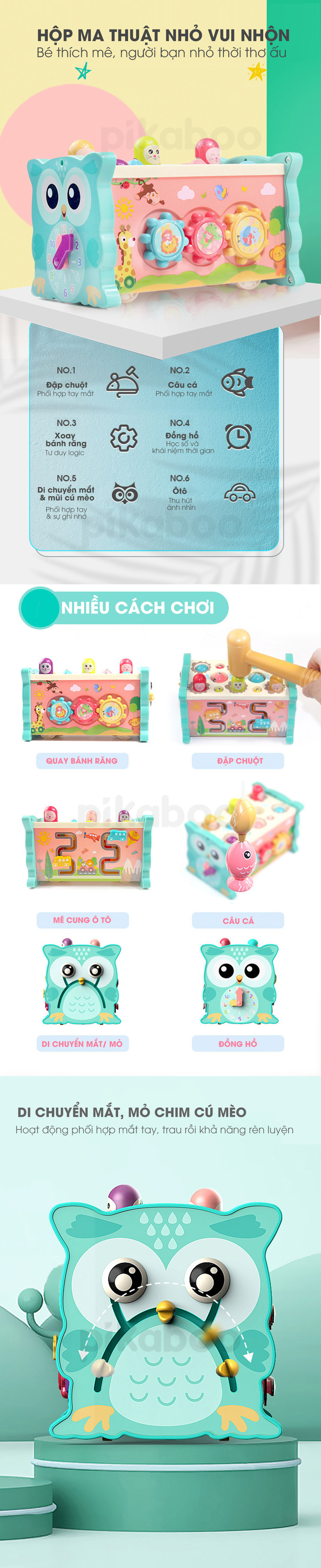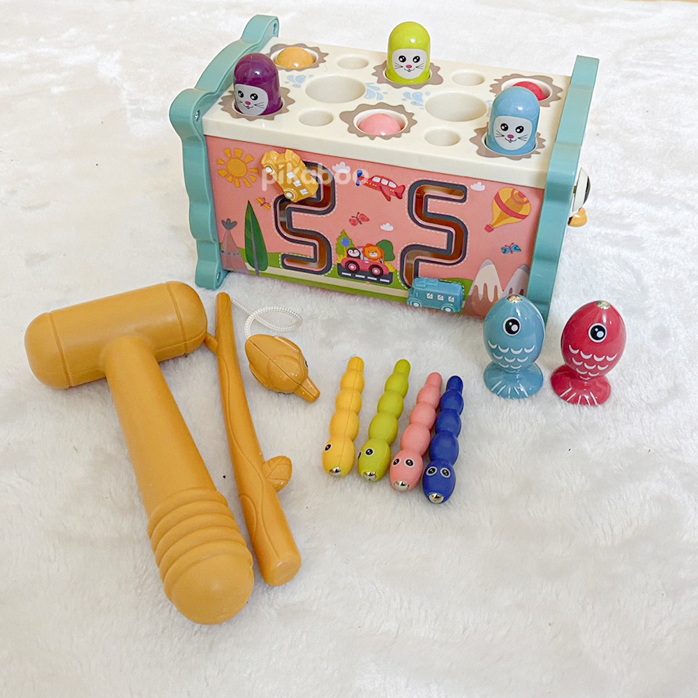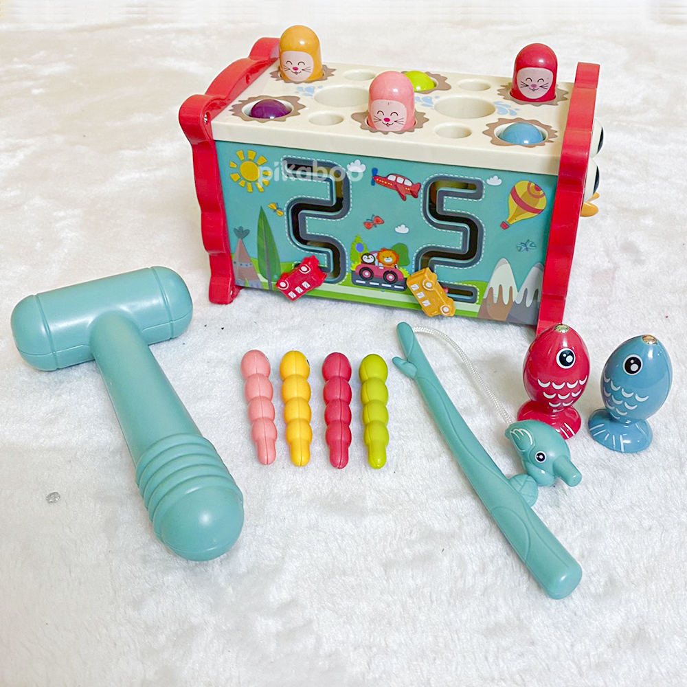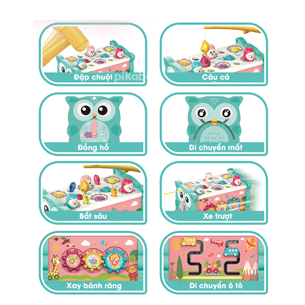 Đồ chơi đập chuột kết hợp câu cá Pikaboo dành cho trẻ từ 18 tháng tuổi. Đây là giai đoạn trẻ đang hoàn thiện kĩ năng vận động tinh để có thể hoạt động linh hoạt nhất.