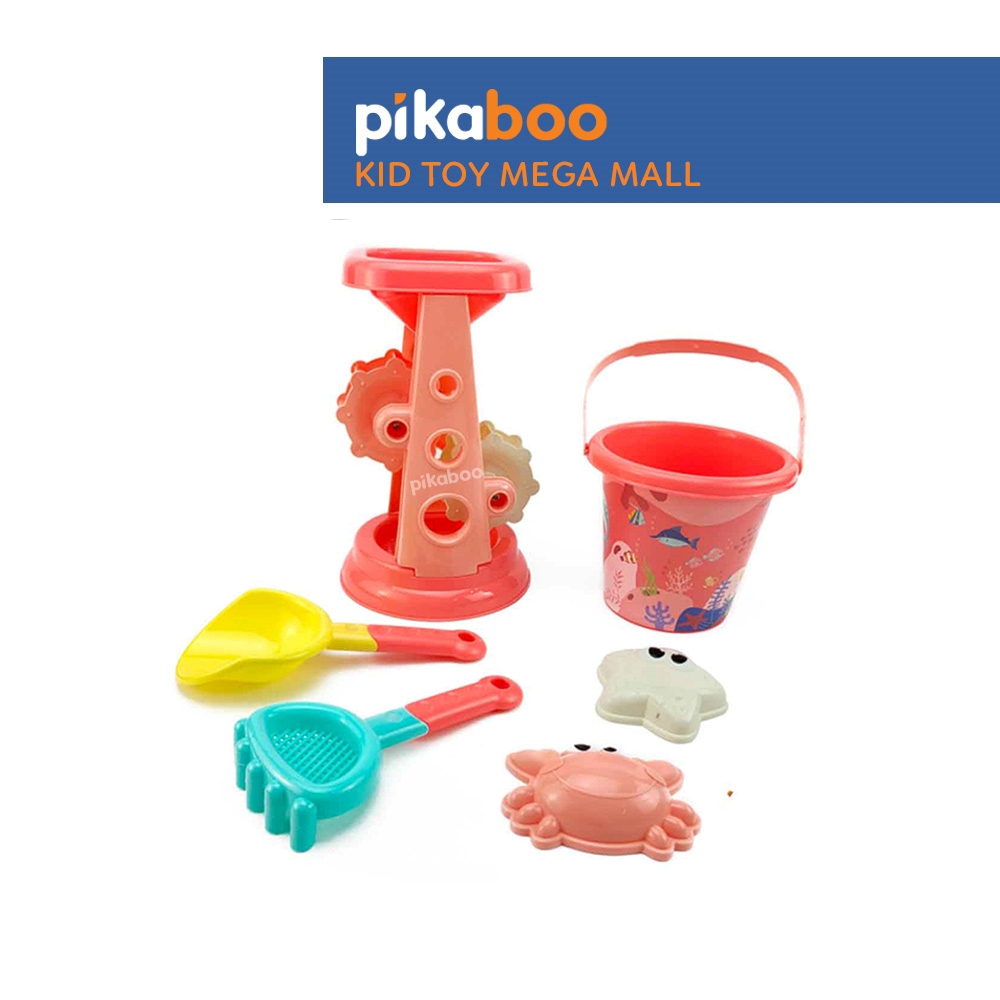 Bộ đồ chơi guồng cát, guồng quay cao cấp Pikaboo được làm bằng chất liệu nhựa cao cấp an toàn, đa màu tươi sắc rất xịn, cầm và chơi chắc nịch.