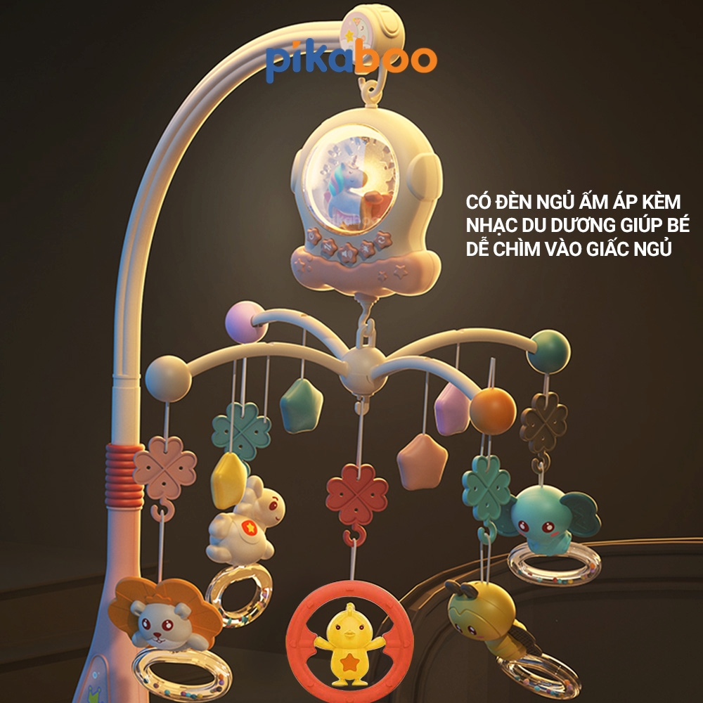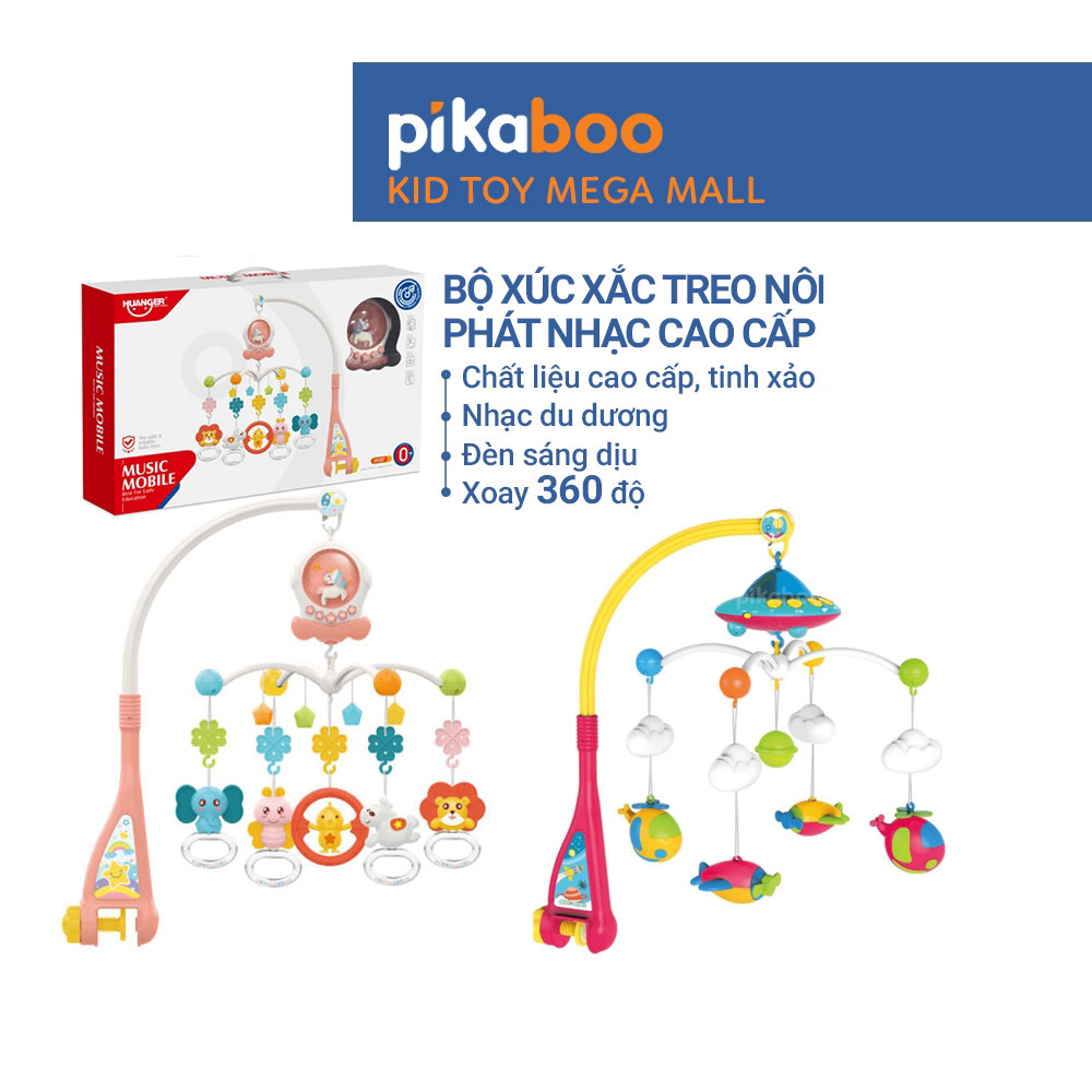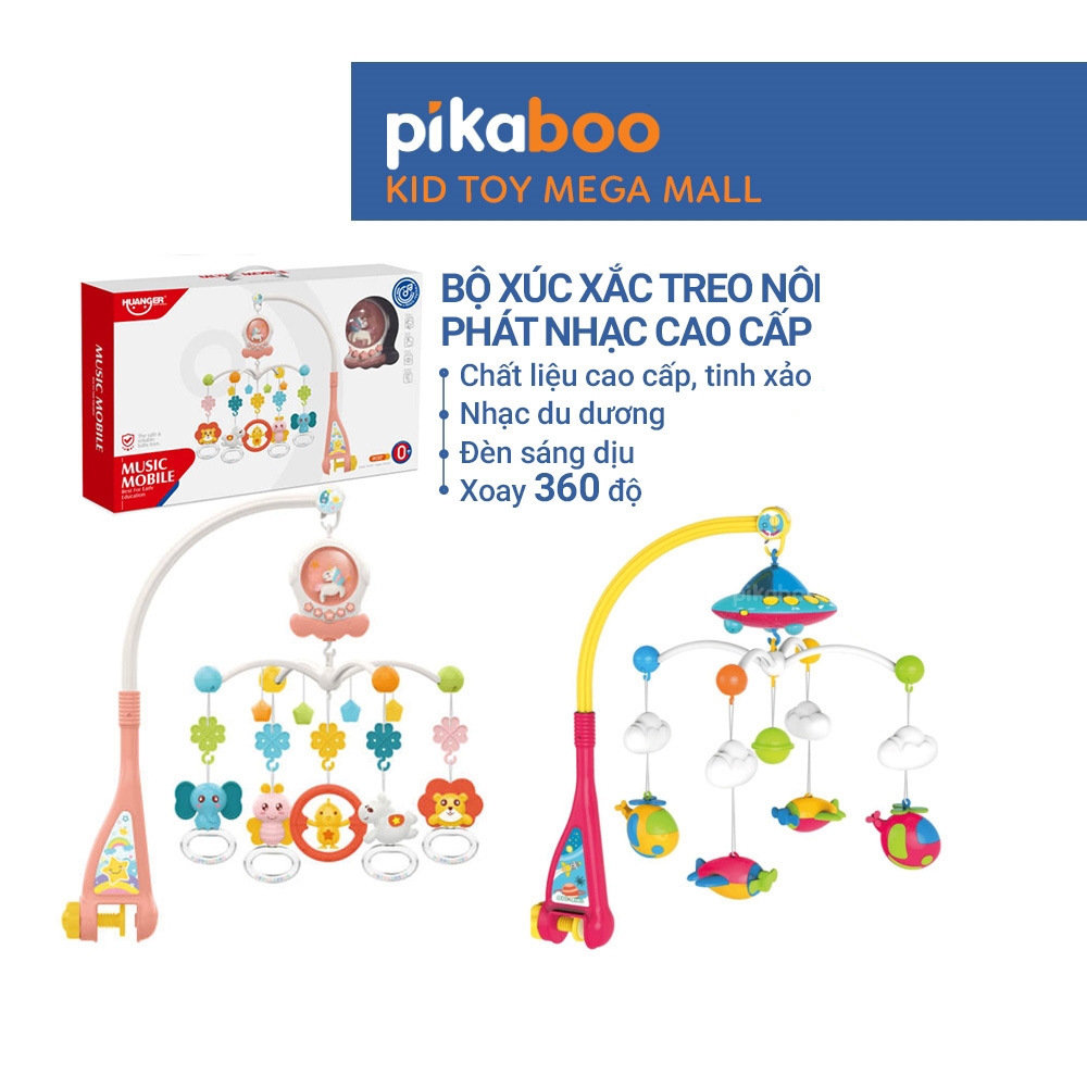 Bộ đồ chơi xúc xắc treo nôi xoay 360 độ kèm nhạc và đèn Pikaboo, chất liệu cao cấp, nhựa dày xịn bóng nhẵn, tinh xảo, cầm chắc tay, đã được cấp chứng nhận kiểm định an toàn cho trẻ nhỏ.