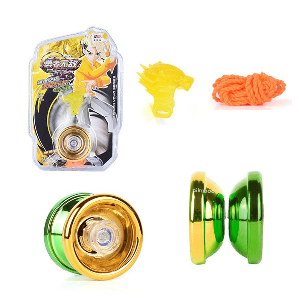 - Bộ sản phẩm bao gồm: 01 con quay yoyo, 01 dây buộc, 01 nhẫn xỏ ngón tay, 01 giá treo bảo vệ yoyo
