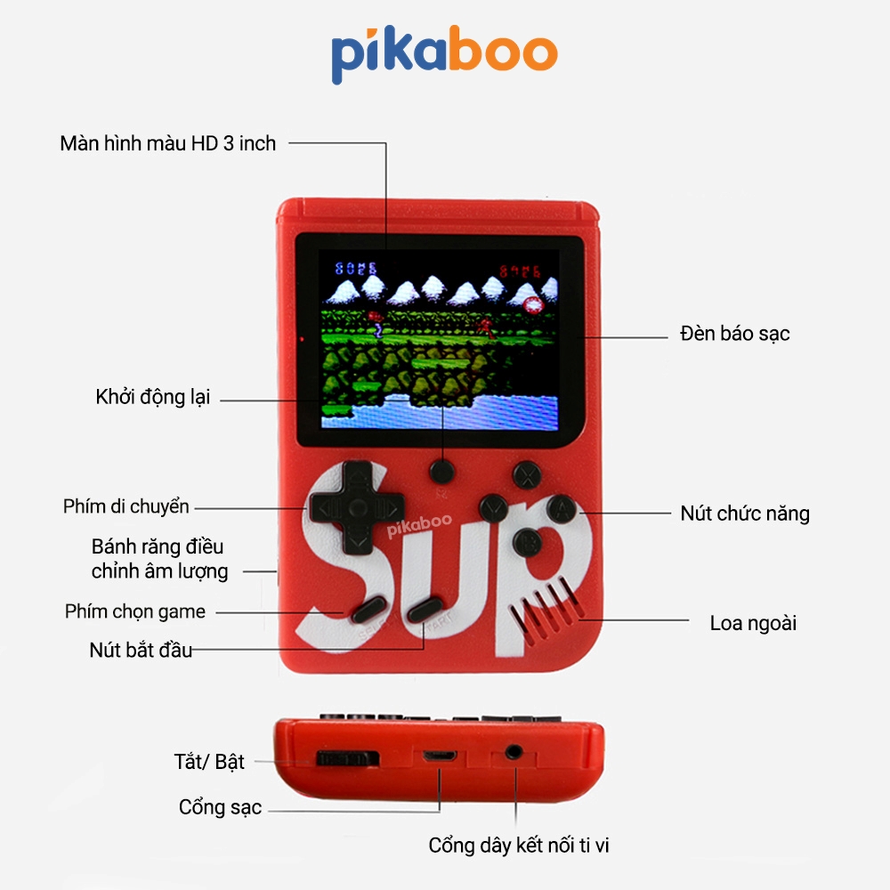 Máy chơi game cầm tay kinh điển 400 in 1 cao cấp Pikaboo có thể kết nối TV chất liệu an toàn