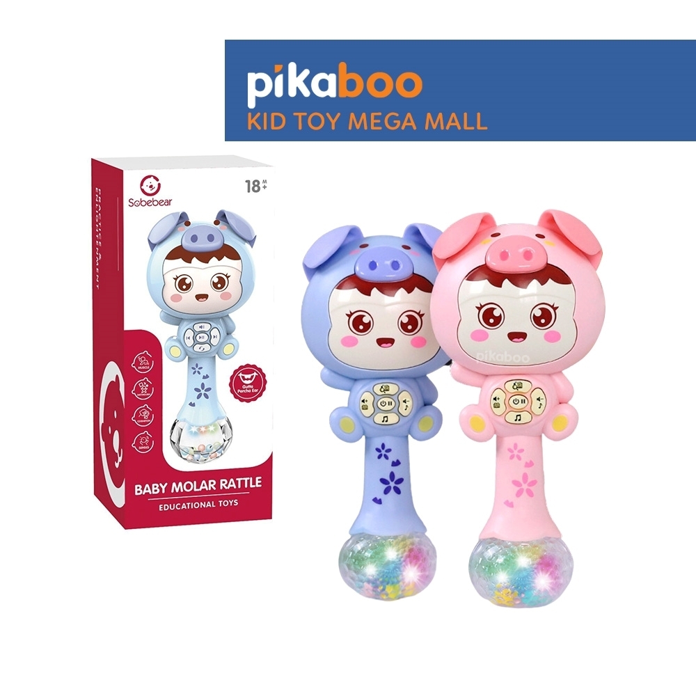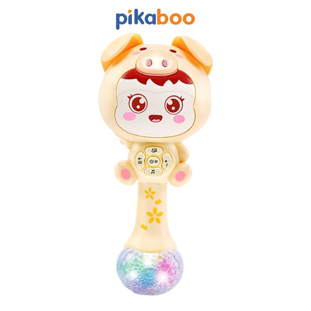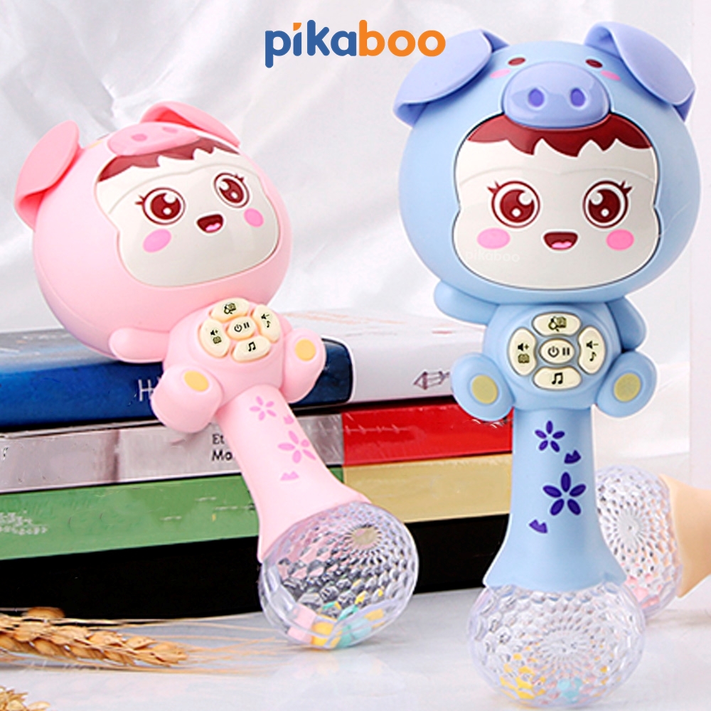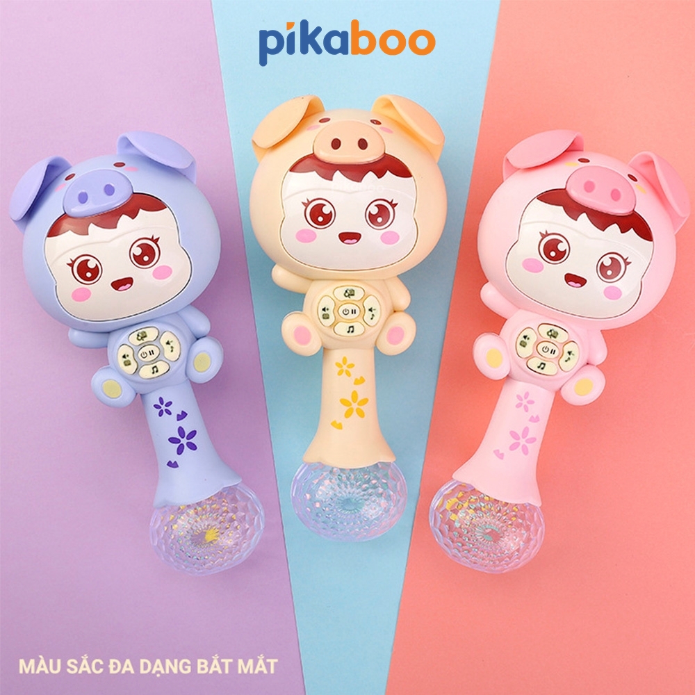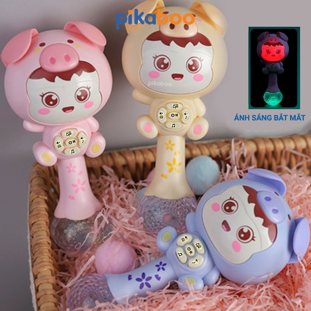 Đồ chơi xúc xắc kèm gặm nướu cho bé cao cấp Pikaboo phát nhạc vui nhộn đèn sáng lấp lánh chất liệu nhựa an toàn