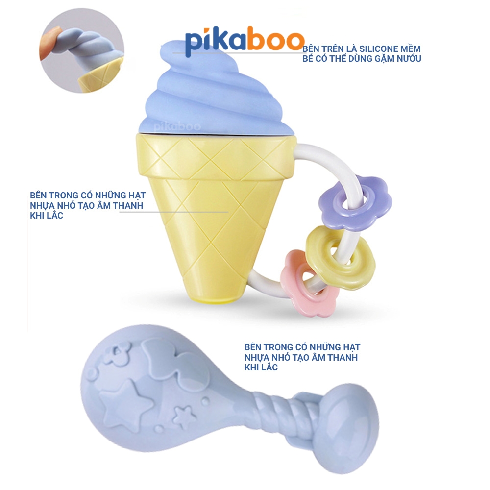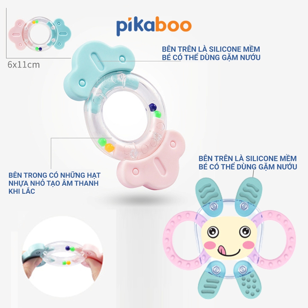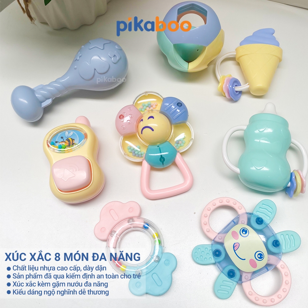 Bộ xúc xắc gặm nướu cao cấp 8 món Pikaboo, xúc xắc kết hợp silicone mềm cao cấp an toàn cho bé