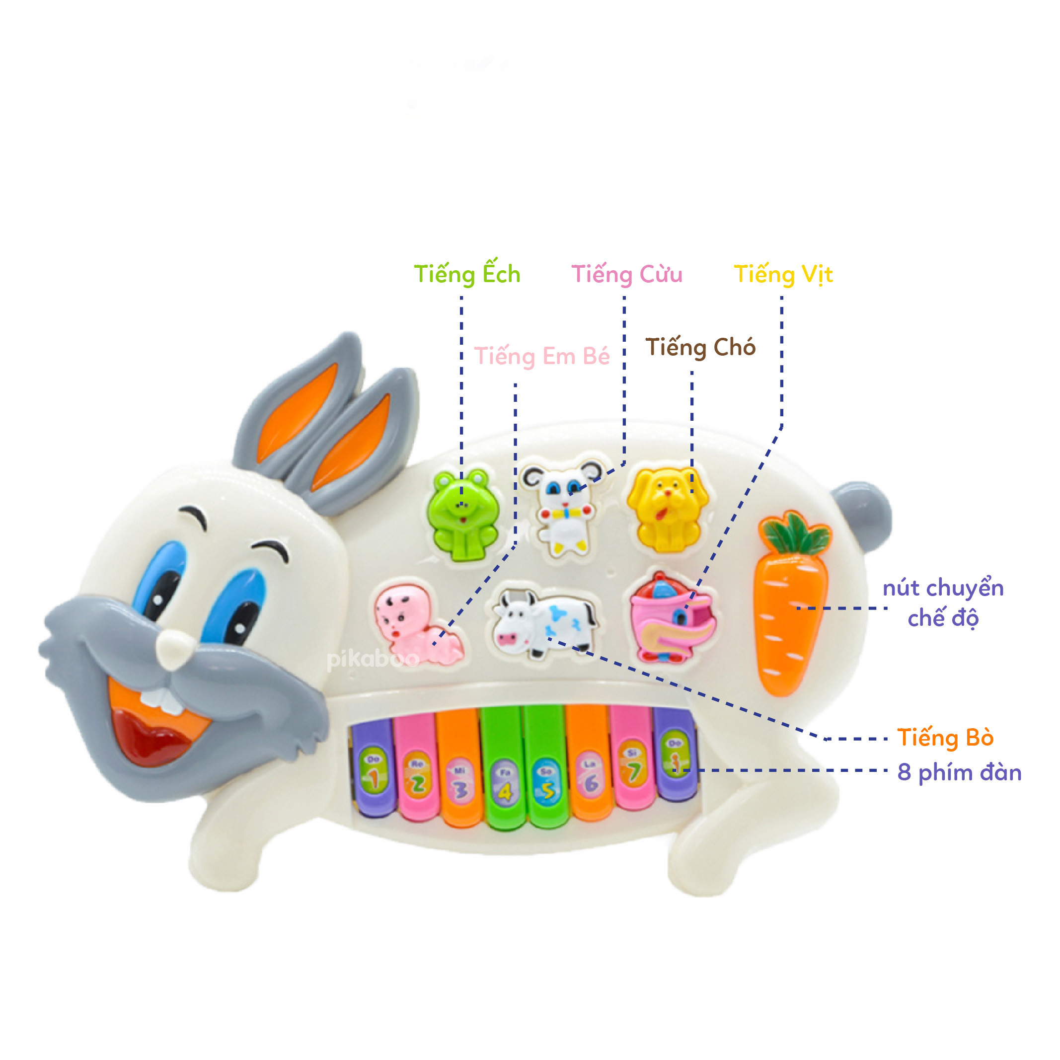 - 2 chế độ phát âm thanh, chế độ 1 là âm thanh của các nốt: đồ, rê, mi, fa, sol, la, si, đô, chế độ 2 là các bài nhạc khác nhau
