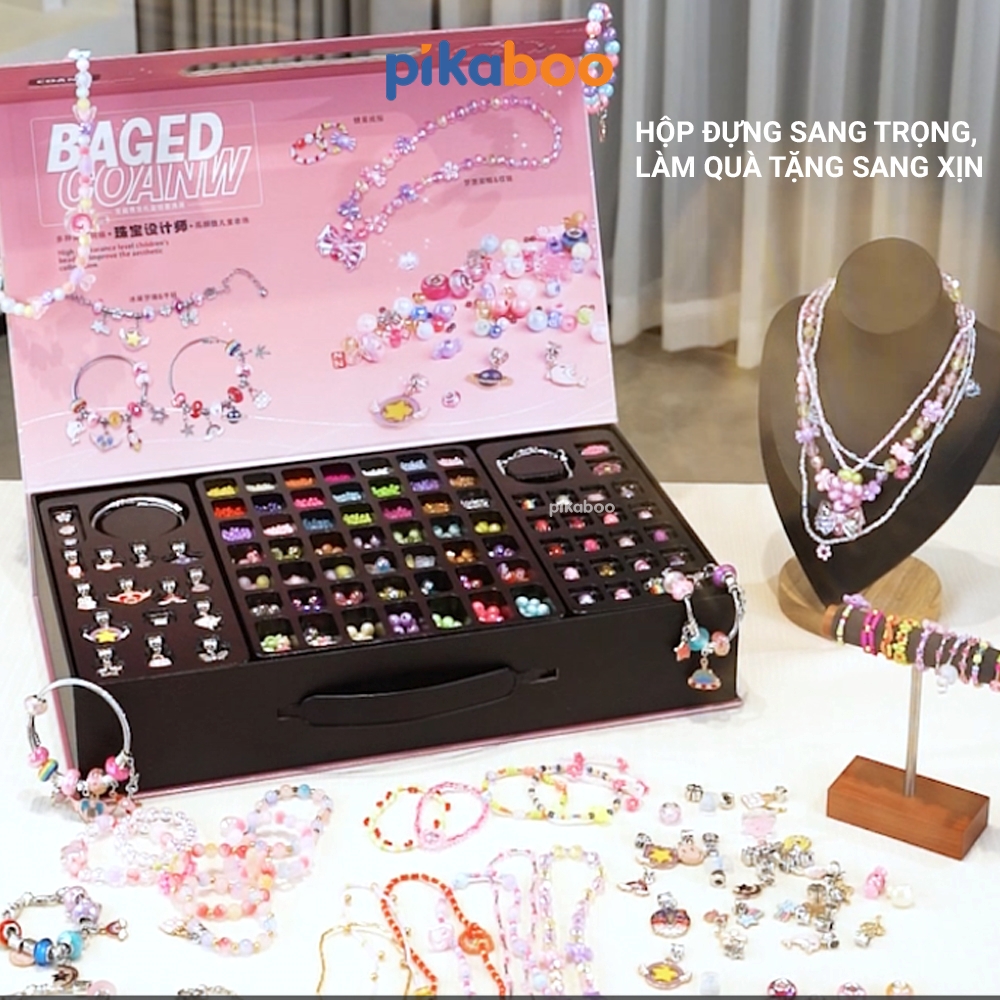 Đồ chơi hộp trang sức, xâu vòng tay cho bé Pikaboo, hạt vòng đa sắc và kiểu dáng để bé sáng tạo, thiết kế hộp sang trọng