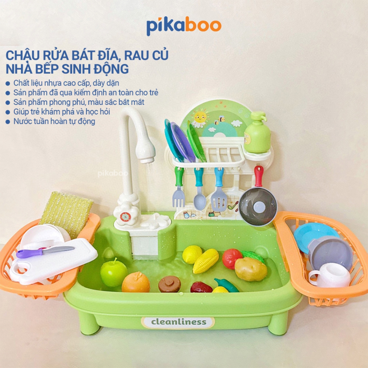Đồ chơi nhập vai nhà bếp cho bé Pikaboo, thiết kế mới lạ chậu rửa bát đĩa rau củ nhà bếp sinh động