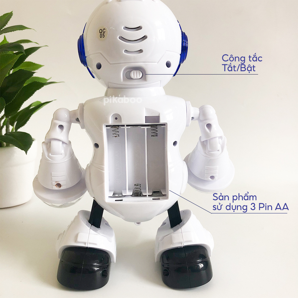 Robot phát sáng và nhảy theo nhạc linh hoạt, cả tay và chân robot đều cử động nhịp nhàng theo tiếng nhạc, kèm theo ánh sáng tỏa ra sẽ khiến bé không thể đứng im 1 chỗ mà phải nhún nhảy, di chuyển theo robot.