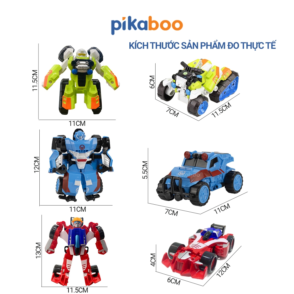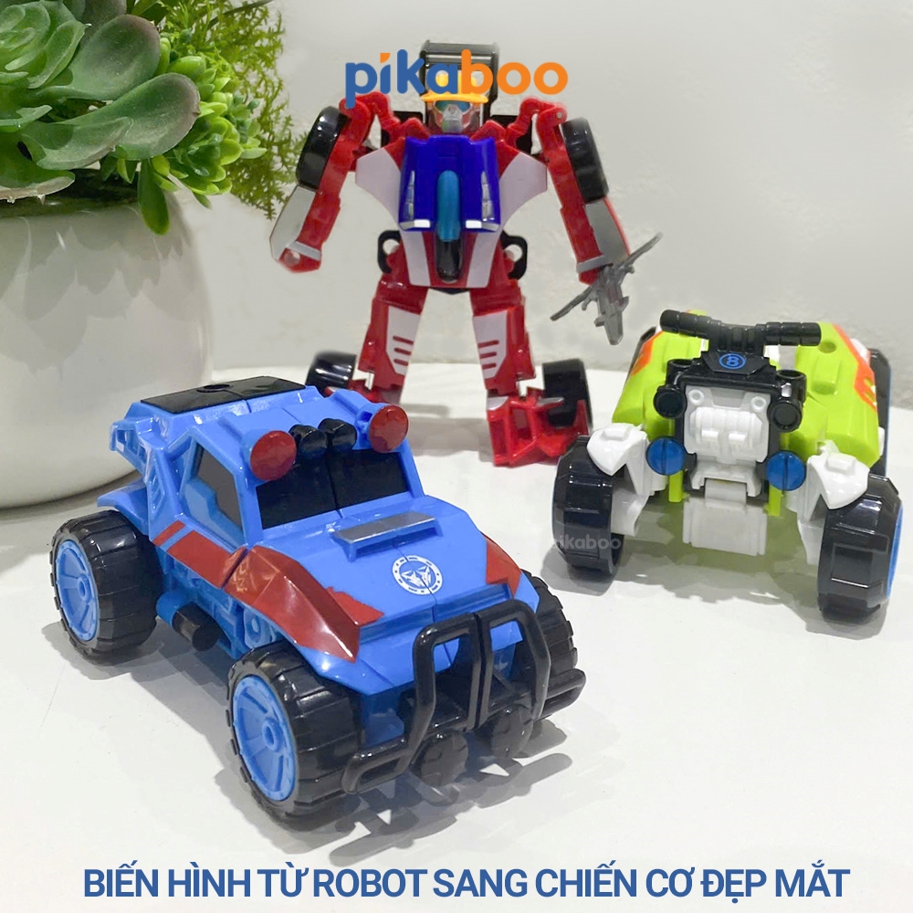 Đồ chơi Robot siêu anh hùng biến hình xe 2 trong 1 cao cấp Pikaboo. Bộ đồ chơi gồm 3 robot biến hình thành chiến cơ đẹp mắt cool ngầu, giúp chon có thêm nhiều lựa chọn khi chơi trong 1 bộ đồ chơi.