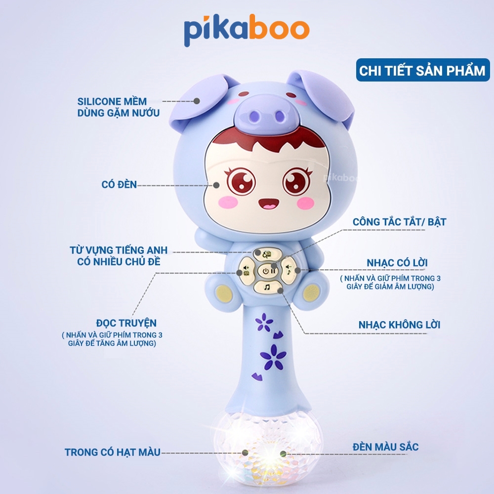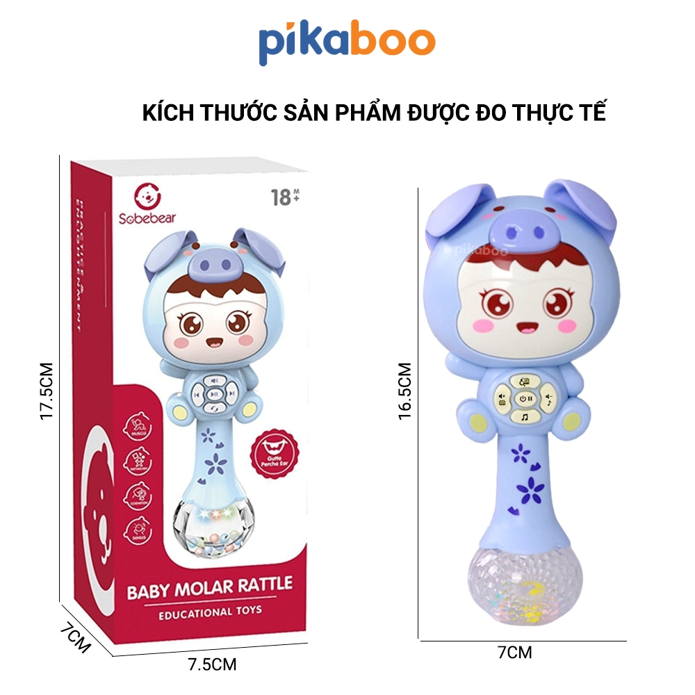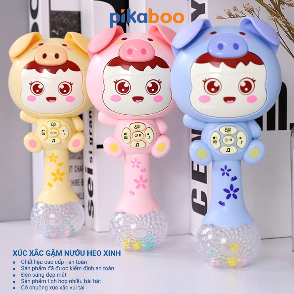 Đồ chơi xúc xắc kèm gặm nướu cho bé cao cấp Pikaboo phát nhạc vui nhộn đèn sáng lấp lánh chất liệu nhựa an toàn